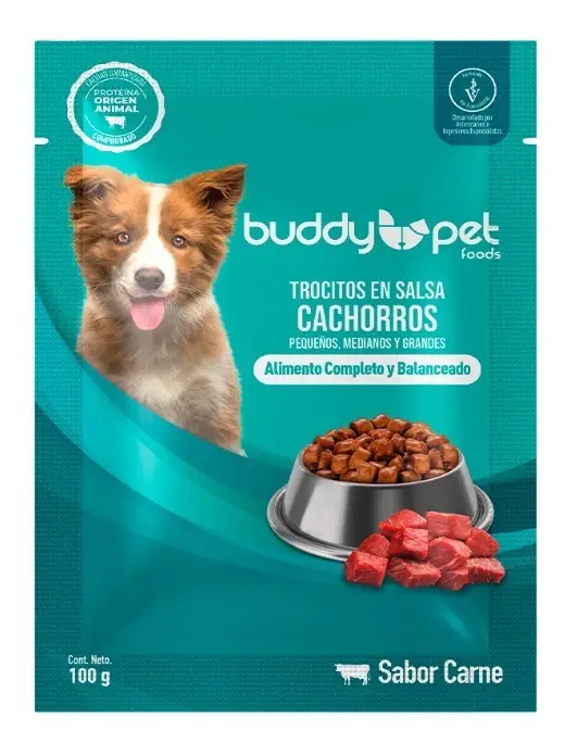 Buddy Pet ha creado esta deliciosa y nutritiva opción de Trocitos en Salsa Sabor Pollo. Un alimento húmedo completo y balanceado, donde cada porción está cuidadosamente elaborada con proteína de origen animal de primera calidad, asegurando una fuente óptima de energía y vitalidad para tu fiel amigo. Además, nuestra fórmula balanceada garantiza todos los nutrientes esenciales que tu mascota necesita para mantenerse saludable y feliz.
